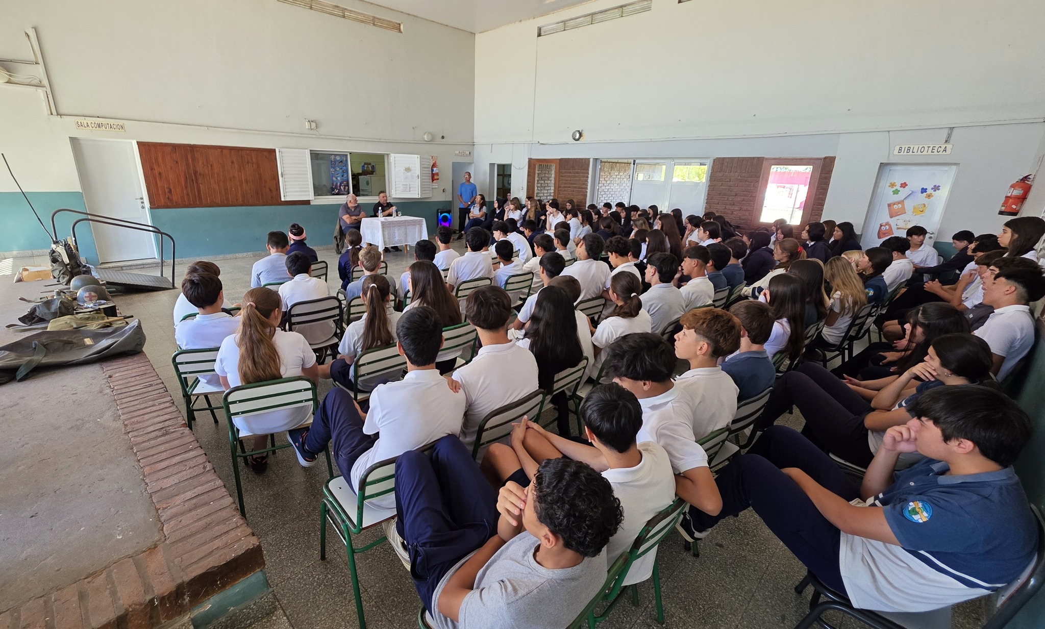 En el marco de la jornada, y con la premisa de seguir “malvinizando” desde el compromiso con la soberanía nacional y la construcción de memoria colectiva, los veteranos también brindaron una charla en la Escuela N° 6 Fraternidad, generando un intercambio enriquecedor con estudiantes y docentes.