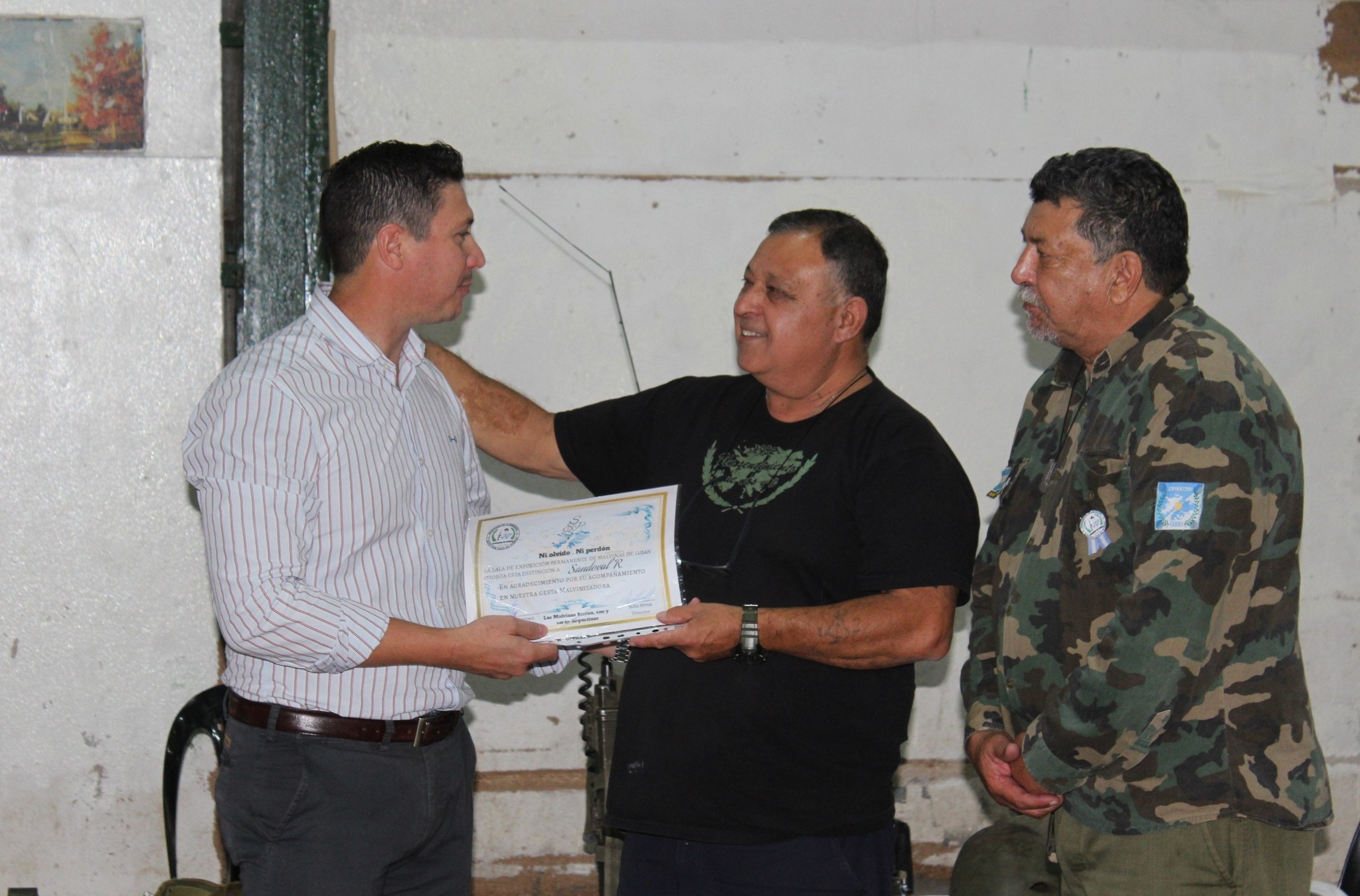 Agradecemos profundamente a Julio Mena, Carlos Daveau y Fernando Martínez por su presencia, generosidad y compromiso permanente en mantener viva la memoria y el sentido de la causa Malvinas.