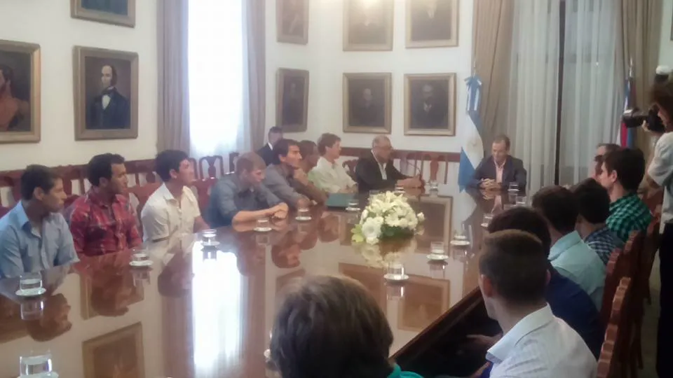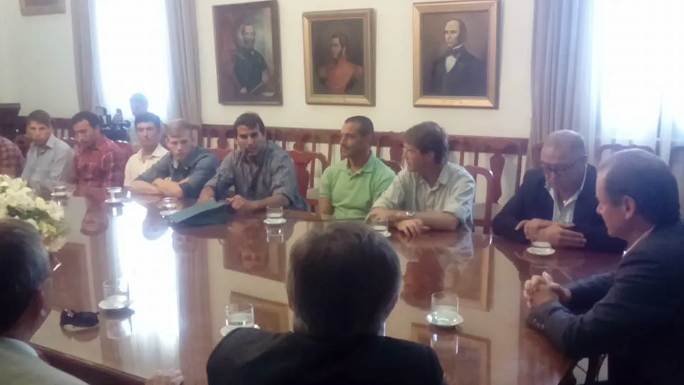 El Plantel de Futbol del Club Depro que logro el Ascenso al Torneo Federal A de Futbol fue recibido por el Gobernador Gustavo Bordet en el Salón de los Gobernadores durante la reunión el Intendente Luis Sandoval en primer lugar dirigió unas palabras de agradecimiento a todos valorando el esfuerzo y el sacrificio de cada una de las partes y destacando el trabajo que se viene realizando para que el deporte entrerriano crezca, Seguidamente el Secretario de Deportes de la Provincia Jose Gomez conto la emoción que se vivio tras la azaña de estos deportistas en Mendoza la alegría fue enorme y el logro es fruto del trabajo realizado durante muchos años, luego el Gobernador tomo la palabra realizando un recorrido por su infancia en Pronunciamiento donde fue testigo de la fundación del Club Depro y felicito a Jugadores dirigentes e inchas por este enorme logro, también brindaron palabras en este emotivo encuentro el Entrenador Hernan Orcellet el Capitán del equipo Oscar Perron el Secretario del Club Silvio Salvagno y el Gobernador Cerro anunciando la visita el día 30 de enero a Pronunciamiento para recorrer la Institución Junto al Intendente Luis Sandoval al Secretario de Cultura y Deportes Prof. Ricardo Sandoval y a los dirigentes del Club proyectando las obras que sean necesarias en la localidad de cara al futuro.