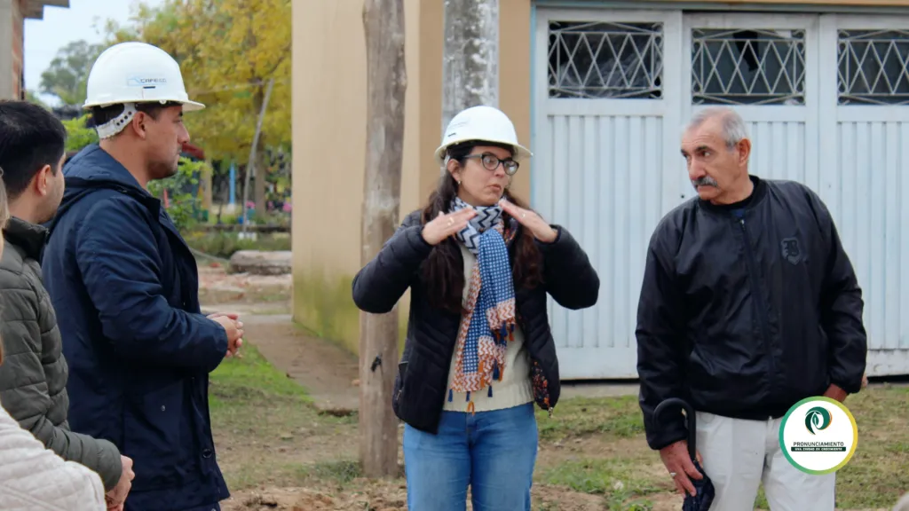 👥 En el encuentro de esta mañana, además de la presencia de la directora de la CAFESG, estuvieron los inspectores de la obra, Darío Panizza y Débora Cortina; el representante técnico de la empresa GRINAC, Jonathan Gianinetto; la viceintendenta Marcela Dallazuana; el titular de Obras y Servicios Públicos municipal, Adrián Soria; el diputado prvincial Silvio Gallay; los concejales del bloque oficialista, Yari Gurnel y Berenice Cardozo; y del bloque opositor, Rubén Salvagno e Ivana Velzi.
